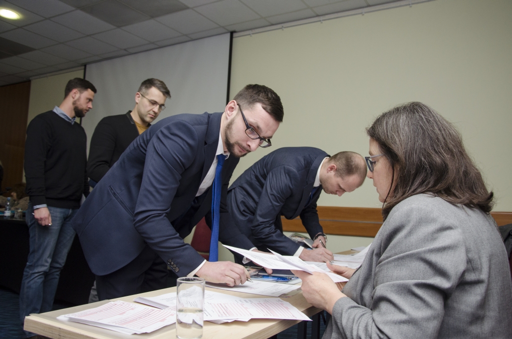 Uprawnienia budowlane wręczali: Przewodniczący Okręgowej Komisji Kwalifikacyjnej DOIIB prof. dr inż. Kazimierz Czapliński w towarzystwie Przewodniczącego Okręgowej Rady DOIIB – dr hab. inż. Eugeniusz Hotały oraz członków Prezydium Rady DOIIB – Marka Kalińskiego i Tadeusza Olichwera. Wraz z decyzją o nadaniu uprawnień budowlanych wręczano wszystkim „uprawnionym inżynierom” obowiązujący w PIIB „Kodeks zasad etyki zawodowej członków Polskiej Izby Inżynierów Budownictwa”.
