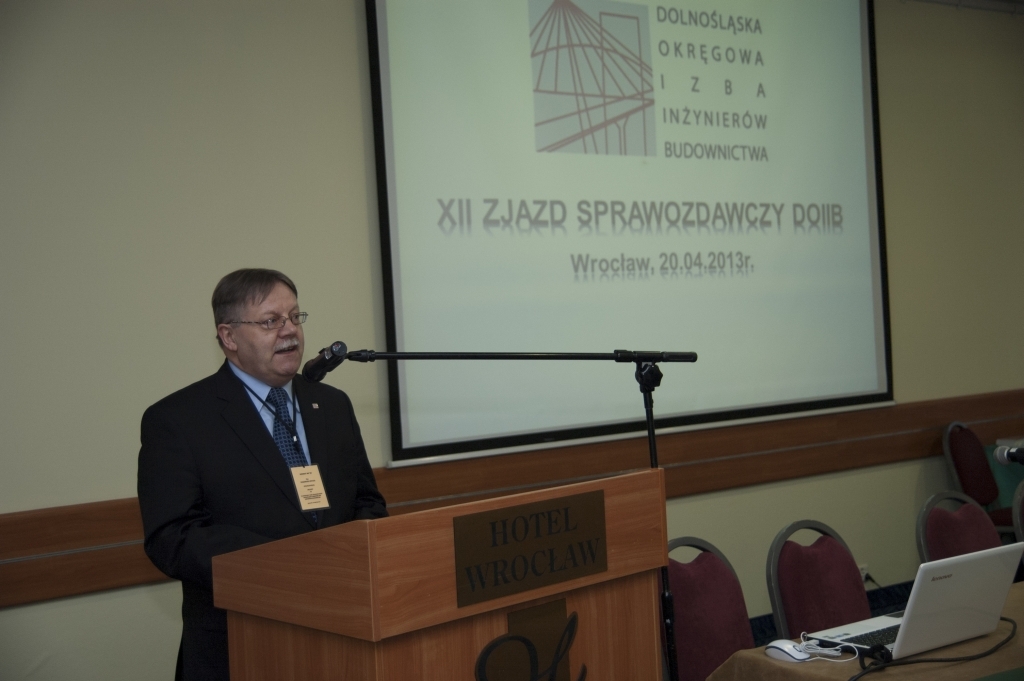20 kwietnia bieżącego roku, o godzinie 10.30, tradycyjnie w sali Krystyna Hotelu Wrocław, 113 delegatów spotkało się na XII Okręgowym Zjeździe Sprawozdawczym Dolnośląskiej Okręgowej Izby Inżynierów Budownictwa. Zjazd otworzył przewodniczący Rady DOIIB Eugeniusz Hotała witając wszystkich przybyłych, a szczególnie gości reprezentujących parlamentarzystów, władze administracyjne i samorządowe, uczelnie, stowarzyszenia naukowo-techniczne i samorządy zawodowe, także z zagranicy. Przypomniał on, że XII Zjazd jest ostatnim dla delegatów wybranych na III kadencję, gdyż w następnym XIII Zjeździe Sprawozdawczo-Wyborczym wezmą udział delegaci nowo wybrani, wśród których z pewnością znajdą się niektórzy z obecnych na sali.
